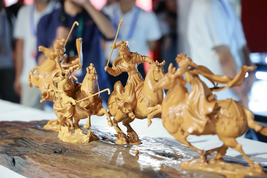 另外,同期展出的三个展览精彩纷呈,各有特色。作为我国民间文艺领域的最高奖项,第十七届中国民间文艺山花奖·优秀民间工艺美术终评作品展展出选自28个省(区、市)的75件作品。浙江工艺美术双年展以“守正创新·艺脉永续”为主题,展出近200件作品,黄杨木雕的圆雕技法在指尖绽放极致张力,漆艺“犀皮起皱”的纹理晕染着东方材料美学;传统茶器与现代养生理念碰撞出生活智慧的火花,古老技艺与当代设计交融成跨越时空的对话……展现浙江工艺家在材质升华与美学对话之间的多元探索。“百工艺都”金华民间工艺精品展展出80余件地域代表作品,从精雕细琢的东阳木雕,到经纬交织的婺州窑陶瓷,再到细腻传神的永康锡雕,集中展现了金华千年文脉与民众审美。